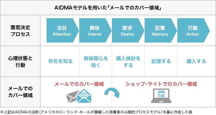 上記のフローからもわかる通り、コンバージョン数は遷移先のショップ・サイト側への依存度が高いため、メールのみで獲得を目指すのは無理がありますが、メールというチャネルへの訪問(開封)顧客を遷移先に送客できるか否かは、メールにかかっています。